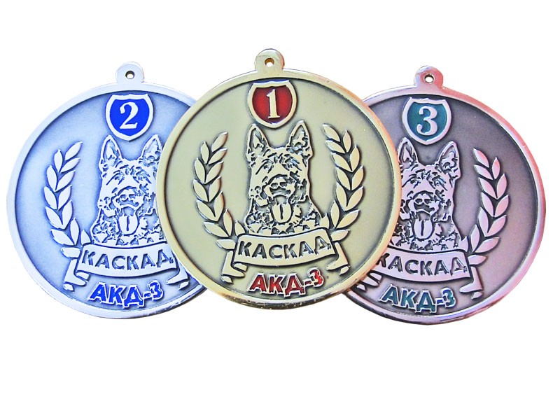 Exclusive Medal "CASCADE" (Association of Kennel Clubs Sports Training Ultimate) - custom-designed layout, taking into account the attributes of the event. Each medal has its original color. Colored enamels and lacquers, which are used in the coating products, have high quality foundation that allows us to produce a personal and vivid. Medal Award of the Association of Canine Sports Club Absolute Training on the reverse side (reverse) are engraved the inscription, which is implemented through the use of chemical engraving technology. Triumph Sports Company has in its arsenal sufficient technological capacity for the production of individual products of any complexity.